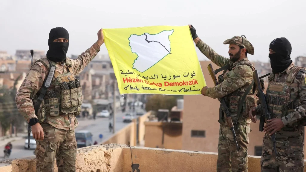 De Koerden, die grote delen van Noord- en Oost-Syrië controleren, onderhandelen met Damascus over de toekomst van hun bestuurlijke structuren en de Syrisch Democratische Strijdkrachten (SDF), een door Koerden geleide militaire coalitie die wordt gesteund door de Verenigde Staten.